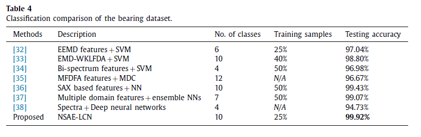 실험 결과는 다음과 같습니다. 다른 논문들과 마찬가지로 CWRU의 12K dataset을 사용했습니다. 전체 데이터 중 25%를 학습에, 나머지 75%를 검증에 사용했다고 합니다.