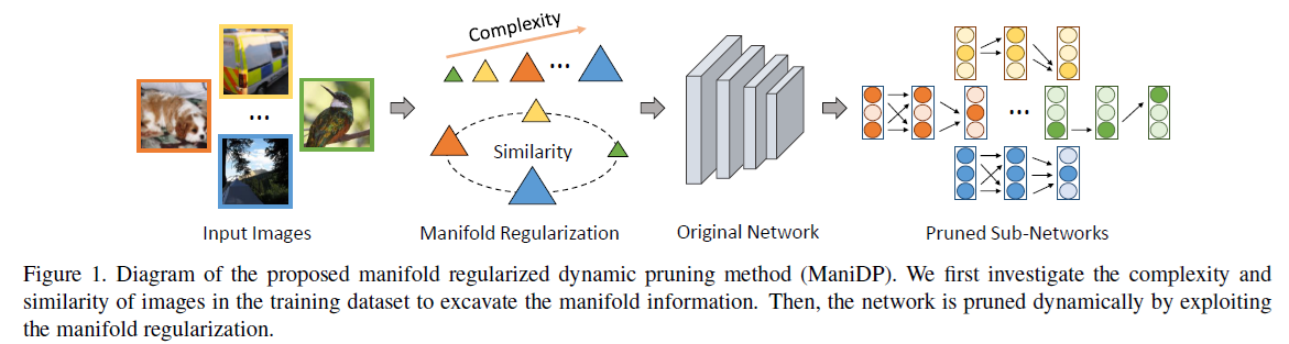 이번 글에서는 CVPR 2021에 accept된 Pruning 논문 중 하나인 Manifold Regularized Dynamic Network Pruning 을 리뷰하도록 하겠습니다.